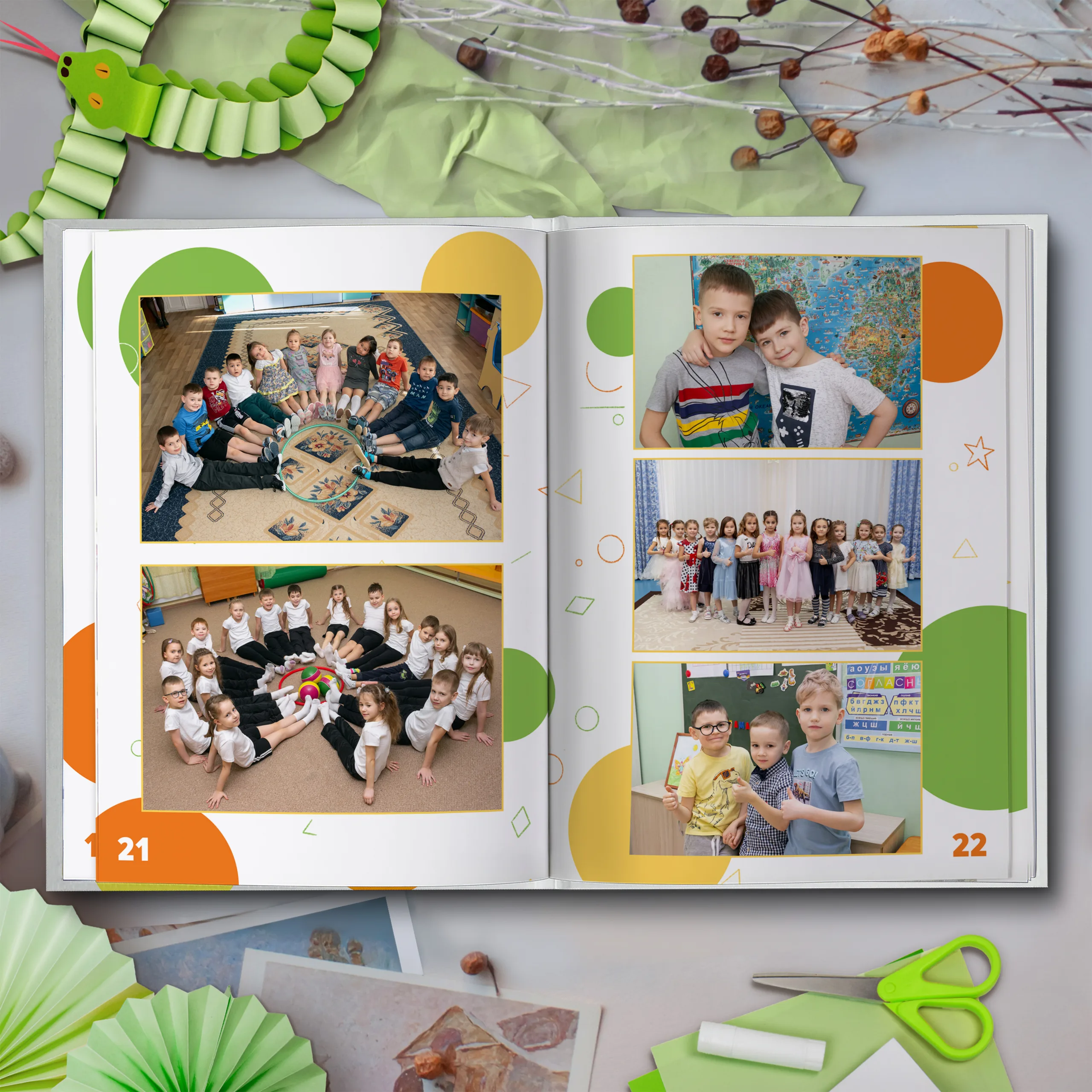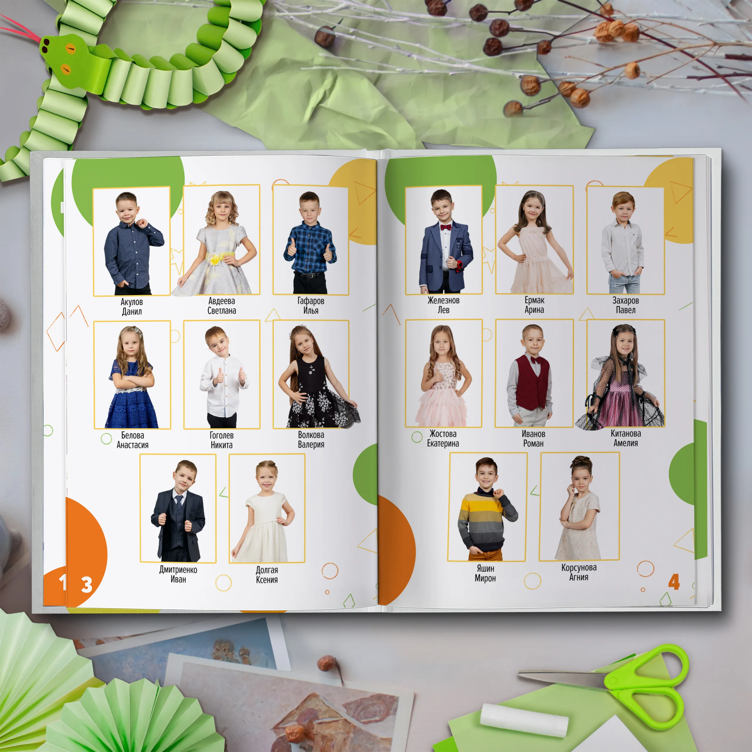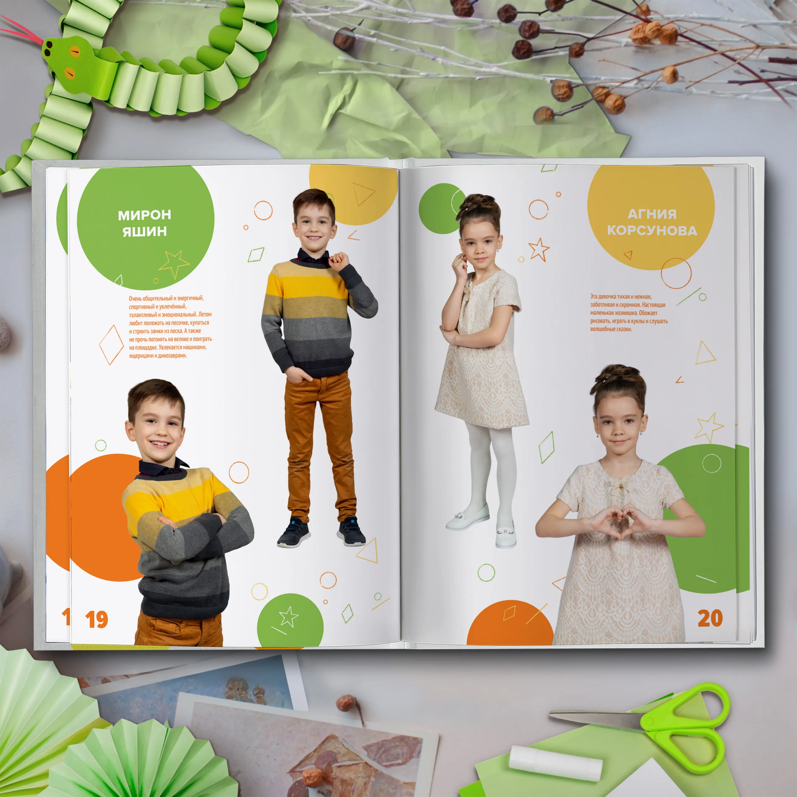 3ий разворот и далее — по 2 личные страницы на ребенка