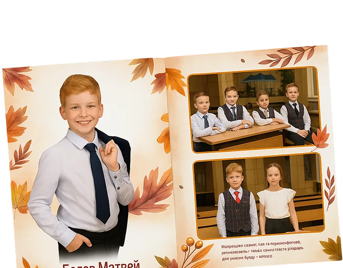 Мы работаем в тесном взаимодействии с клиентами, согласовывая каждую деталь, чтобы финальный результат радовал и детей, и родителей. Благодаря профессионализму наших фотографов и дизайнеров каждый альбом становится хранителем дорогих воспоминаний о школьной дружбе, первой влюбленности и мечтах о будущем.