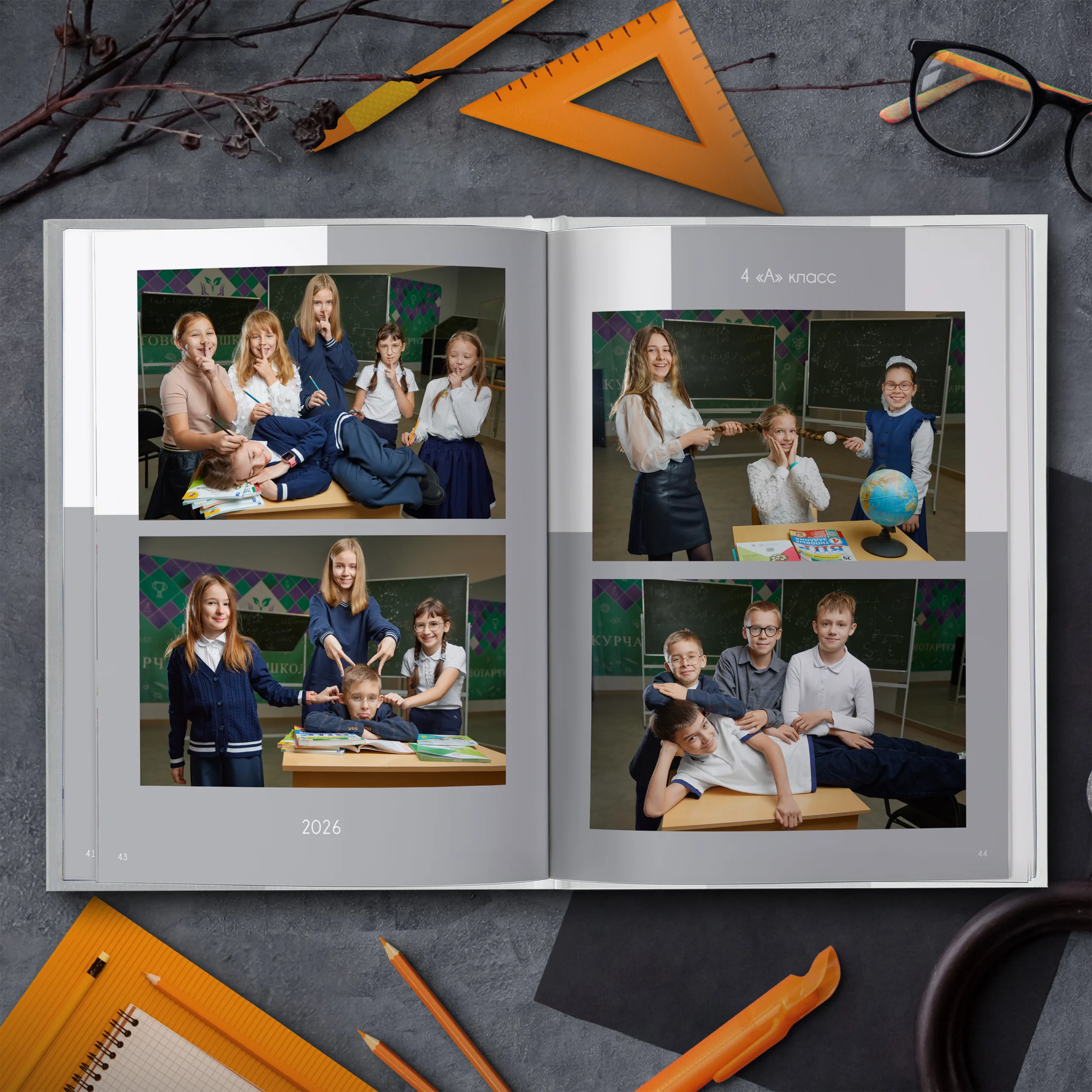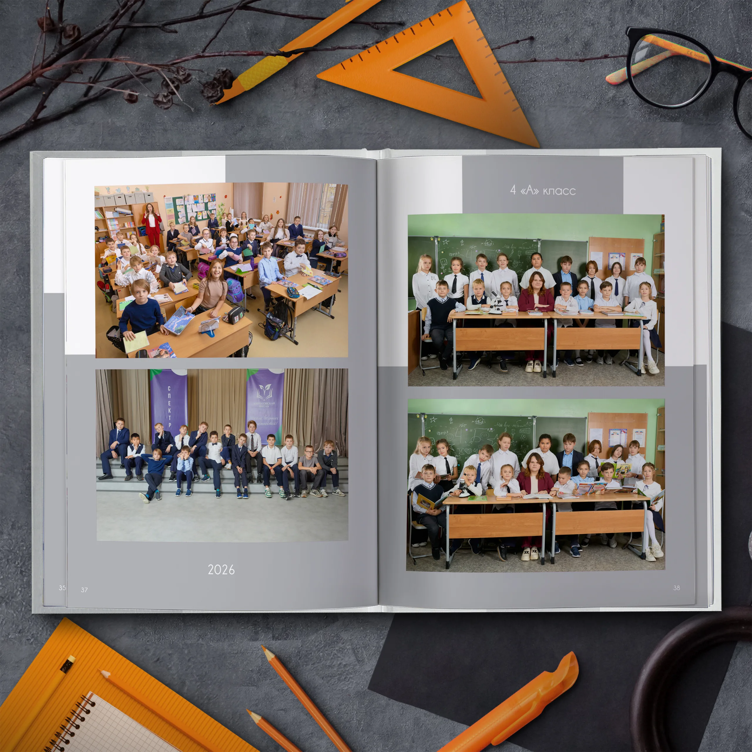 Последние 3 разворота — общие репортажные фотографии класса (20шт.)