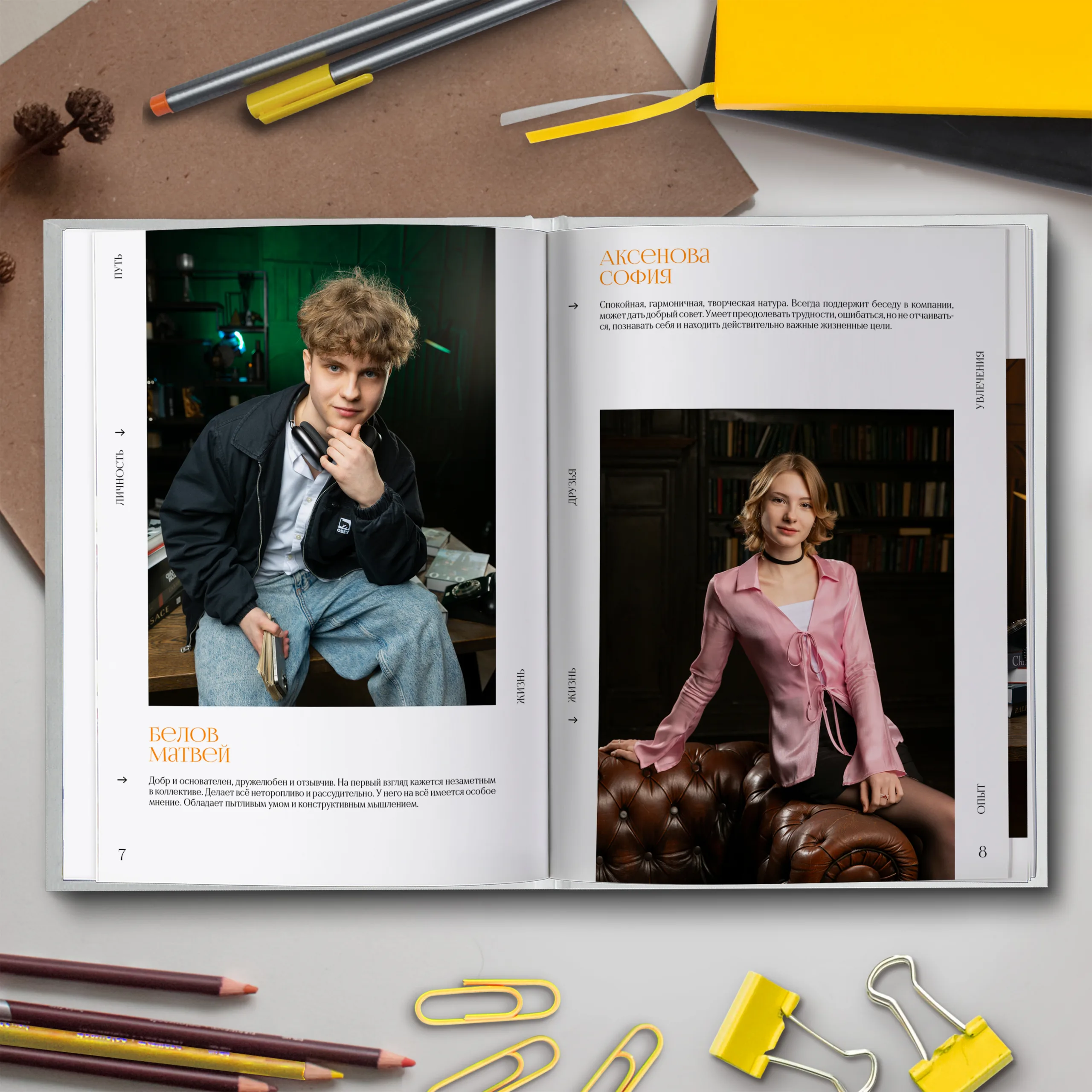 4ый разворот и далее — личные страницы учеников с личной характеристикой